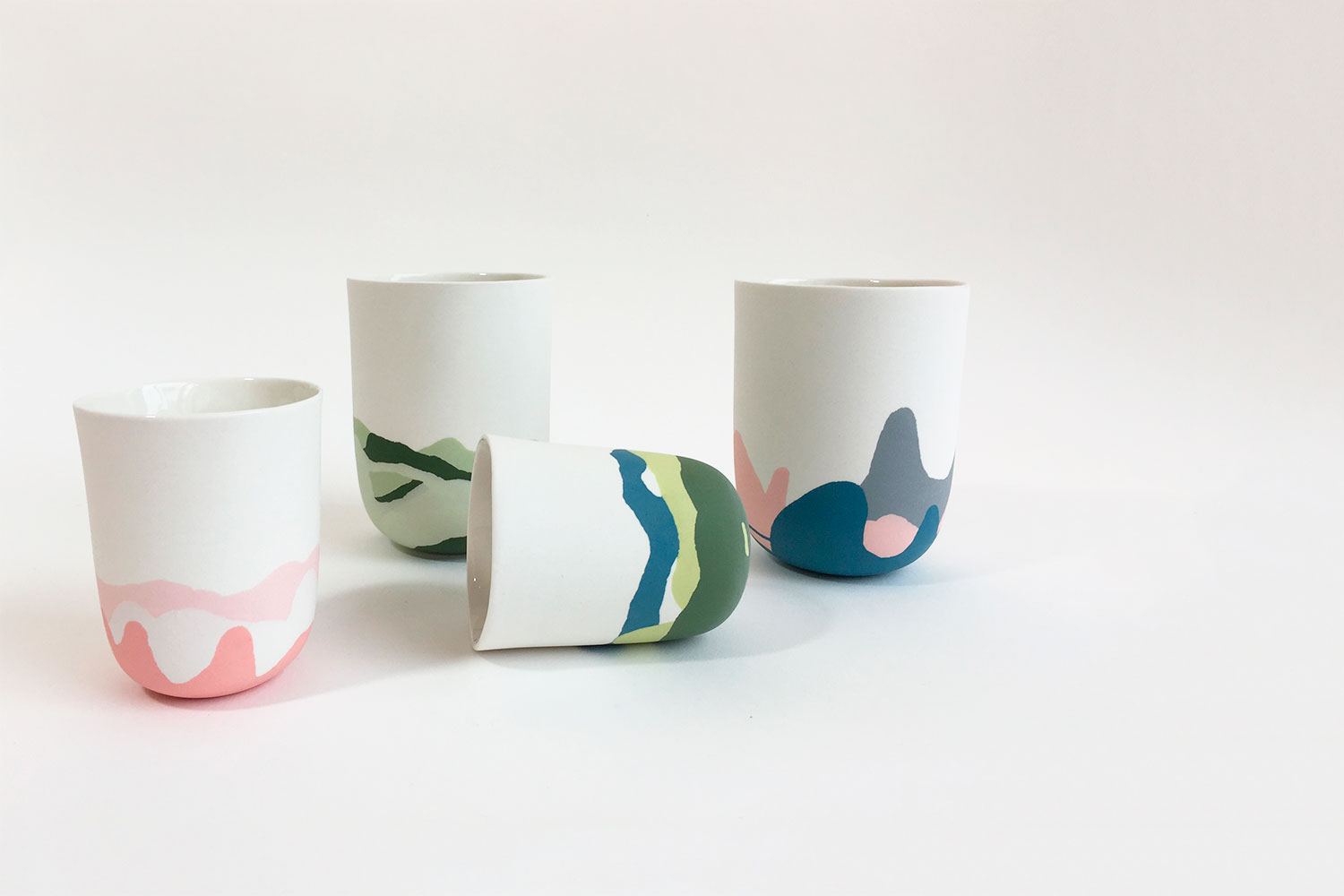 Curieuse galerie vous fait découvrir les céramiques en porcelaine de Pia Van Peteghem. Entre le paysage minéral et aquatique, les aplats de couleurs pastels de ces gobelets appelle à la contemplation de notre quotidien.