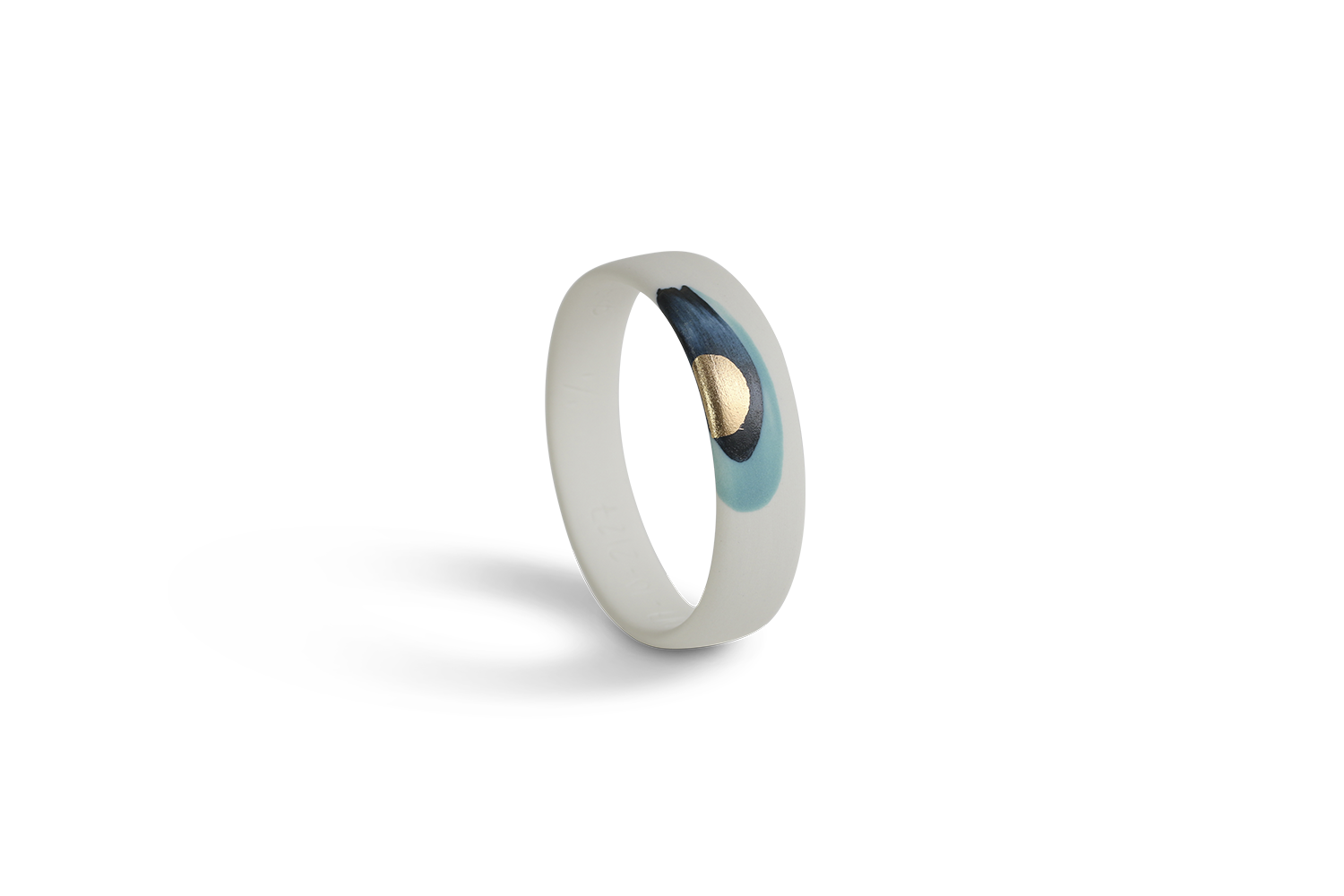 Bracelet en porcelaine non émaillé. Les motifs bleu et or sont peints à main levée. Différentes tailles sont disponibles. Série limitée