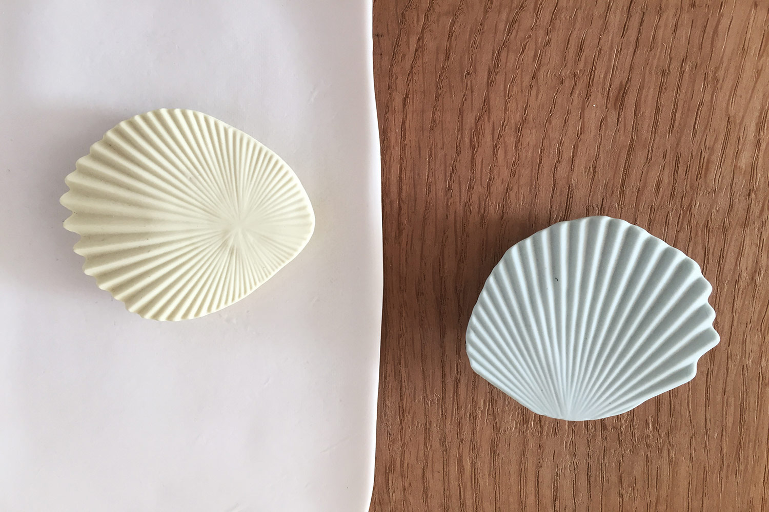 Broche en biscuit de porcelaine bleu pâle. Motif géométrique moulé dans la masse. Pièce unique numérotée et gravée.
