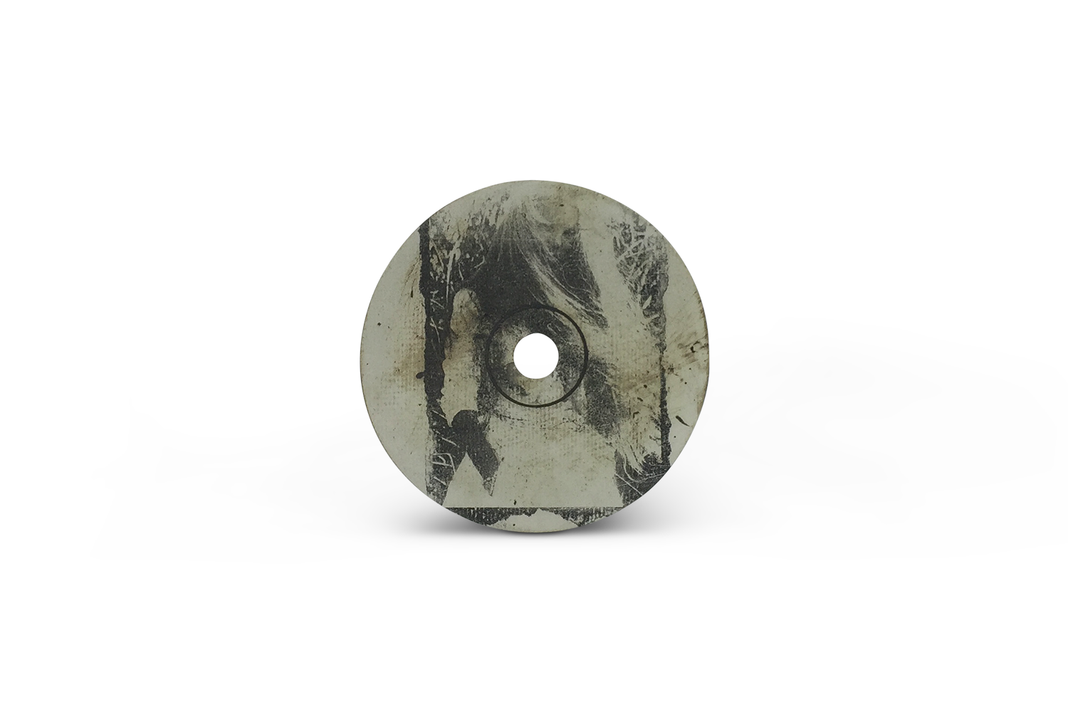 CD en céramique. Image d'une jeune fille aux cheveux longs. Impression photographique noire et blanche sur faience polie, oxydes. Pièce unique à poser ou à suspendre
