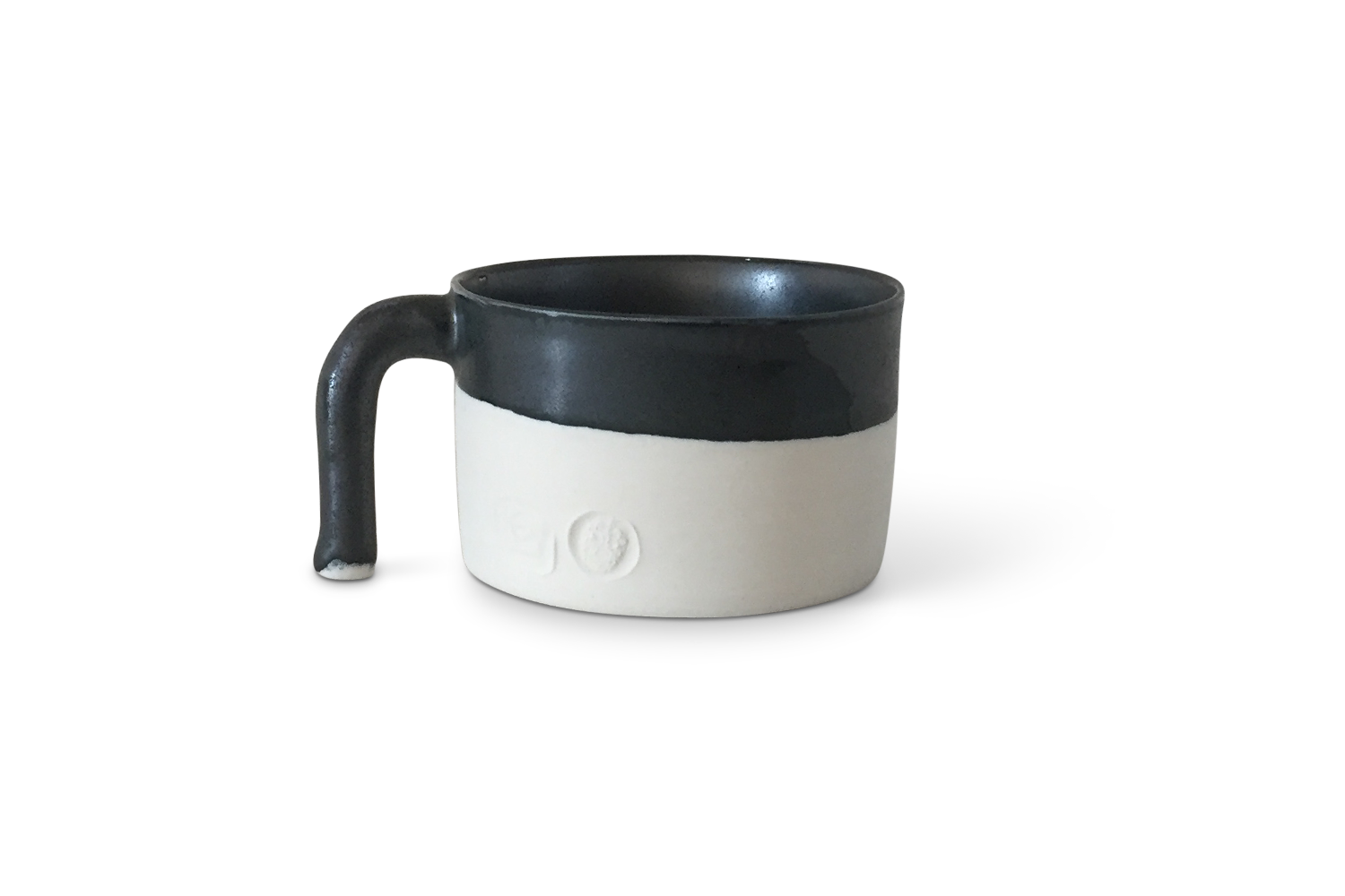 Grande tasse à anse en porcelaine entièrement couvert d'un émail noir à l'intérieur et partiellement à l'extérieur. La base est blanche avec une finition mate. Céramique utilitaire. Série limitée signée.