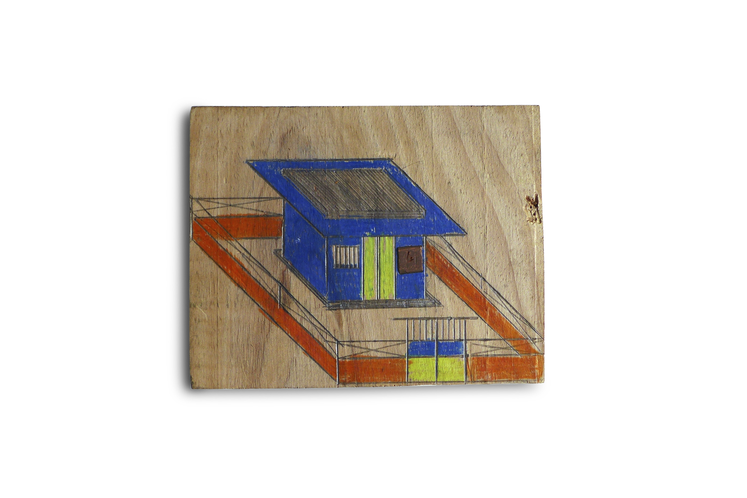 Dans les rues de Barcelone, Hassan, d'origine sénégalaise dessine sur des planches de caisses de vin, qu’il retaille à la scie et au cutter, des maisons à toit plat et du mobilier fonctionnel d’inspiration géométrique. Il investit sur ces petit formats un monde parallèle, un espace de vie fantasmé construit à partir de de losanges, de rectangles qu'il remplit ensuite de couleurs vives. En guise de signature, il inclut dans le bois, poinçonne et polit une petite pièce de métal qu’il façonne en forme d’agrafe. Ses œuvres se trouvent dans de prestigieuses collections d’art brut.