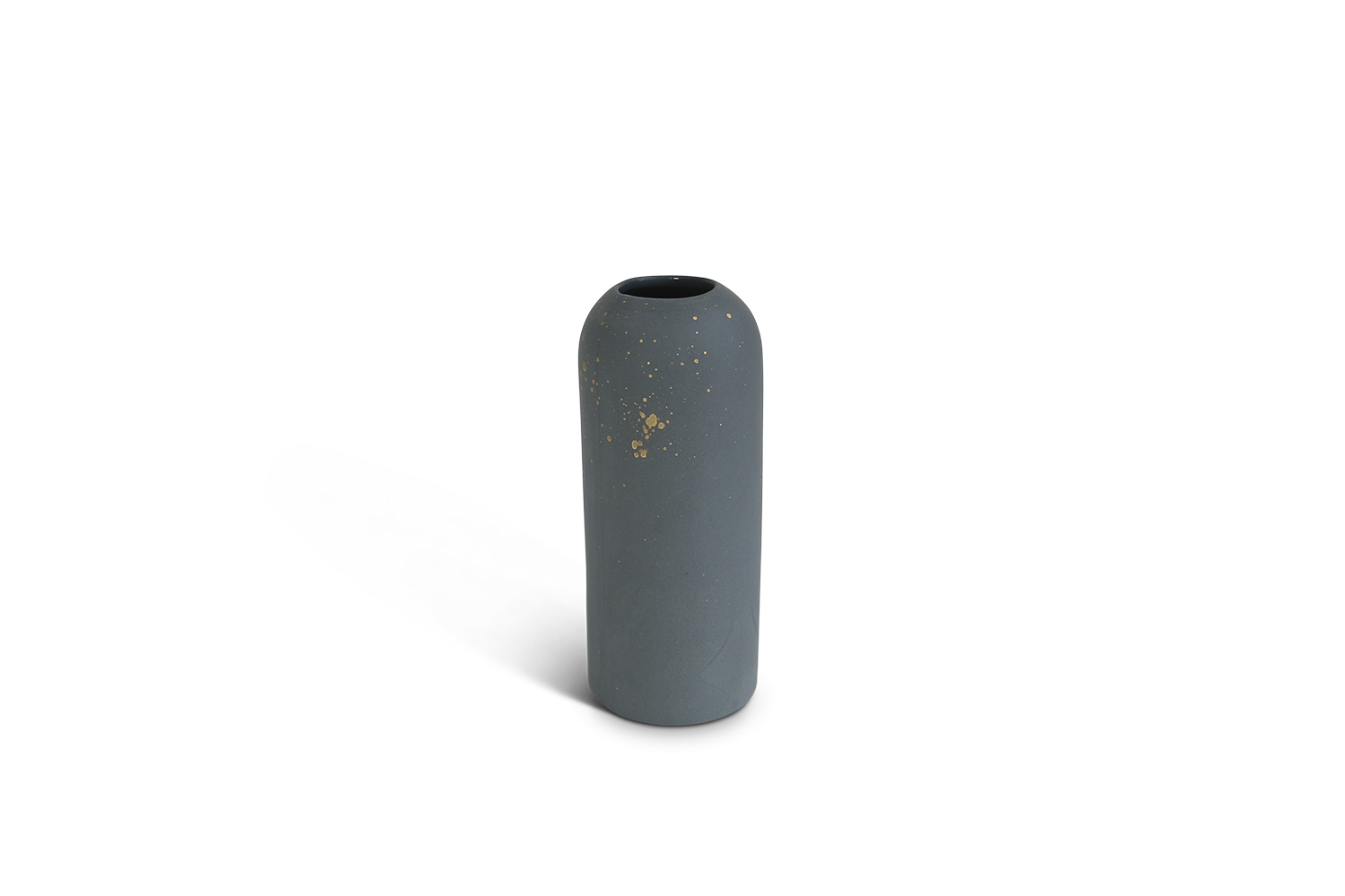 Vase en porcelaine de couleur gris foncé teinté dans la masse avec des taches d'or. Finition mate à l'extérieur et émaillée à l'intérieur. Céramique utilitaire. Pièce unique