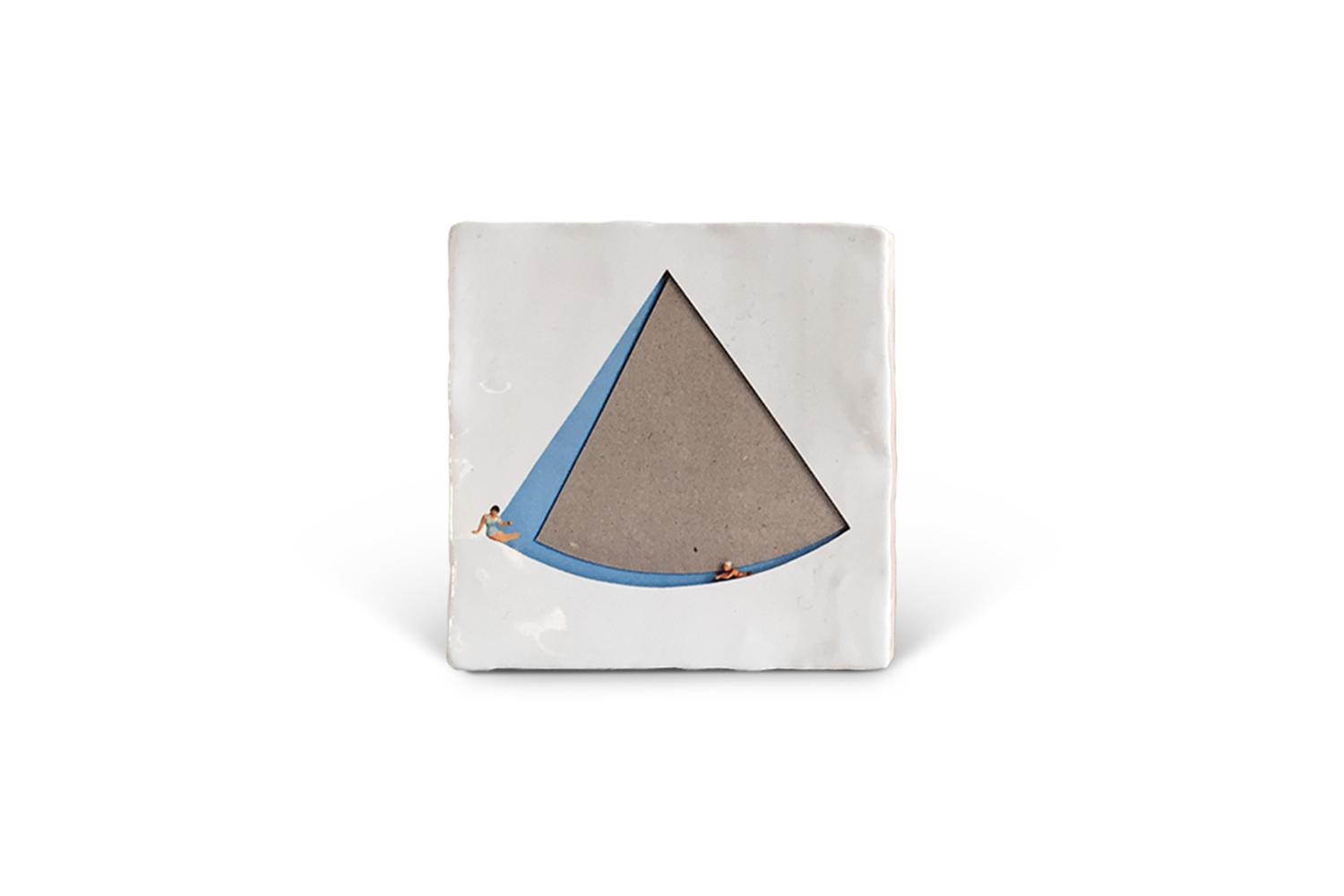 Carreau de faience à suspendre. Un jour à la piscine. Transfert de collage photo et motifs peints. Suspension métallique intégrée au dos 45 € PROMOTION -30% 31 €