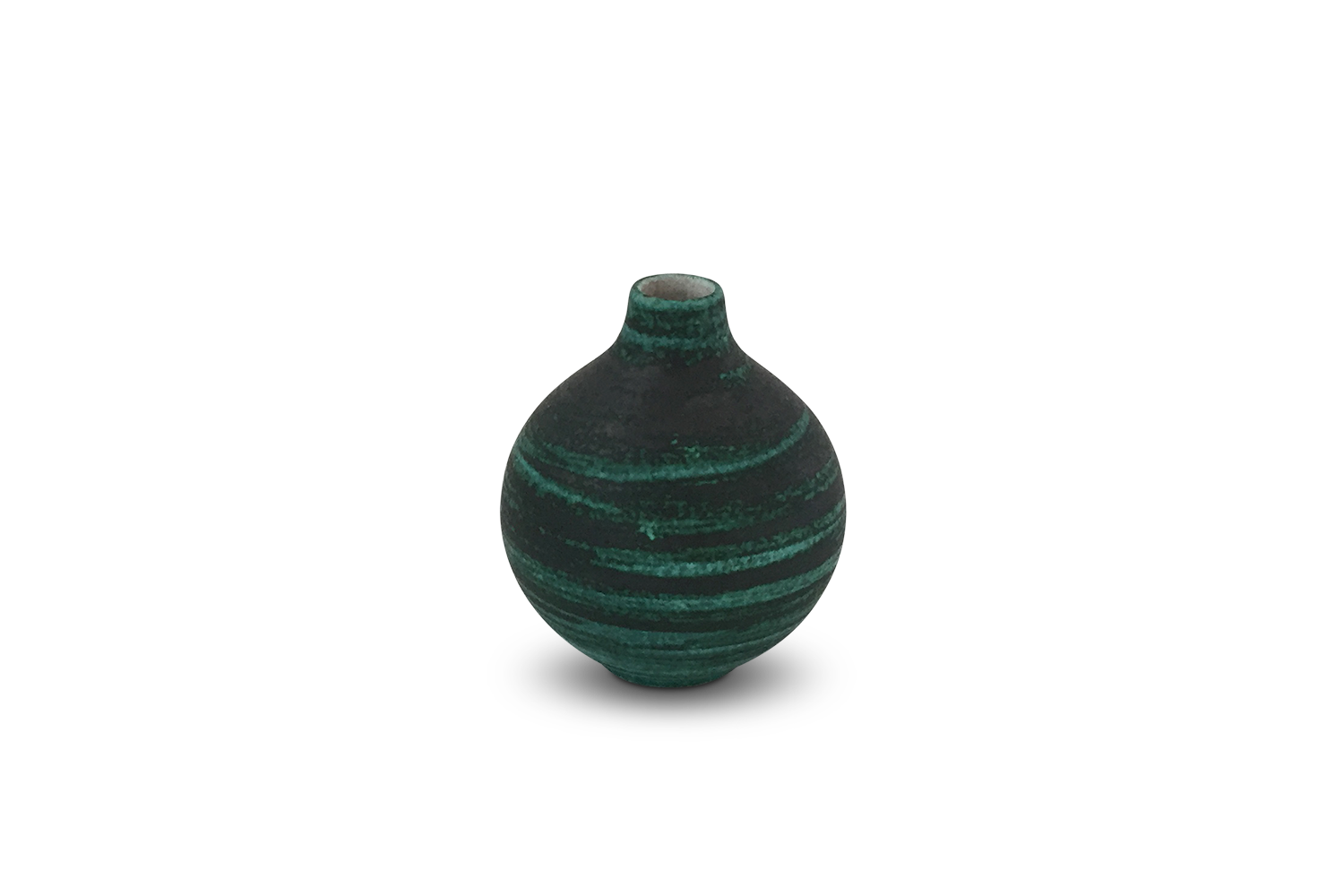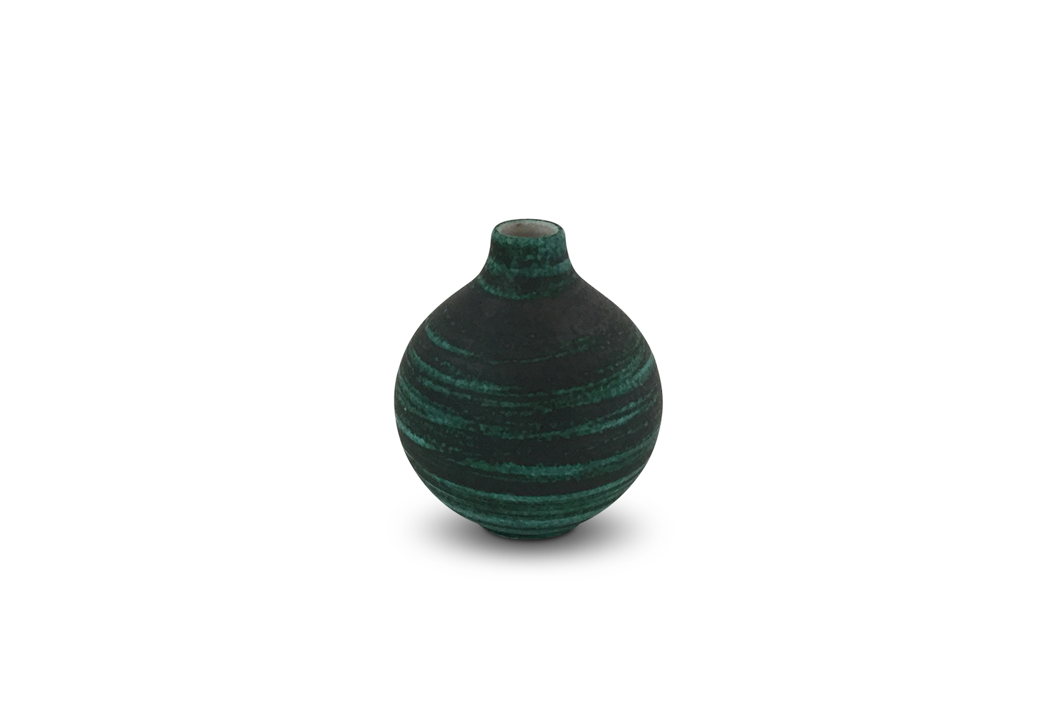 Vase boule produit par la manufacture Wachtersbach. Email mat turquoise et noir. Allemagne de l’ouest, 1970. Dimensions : cm Référence : VAL-004